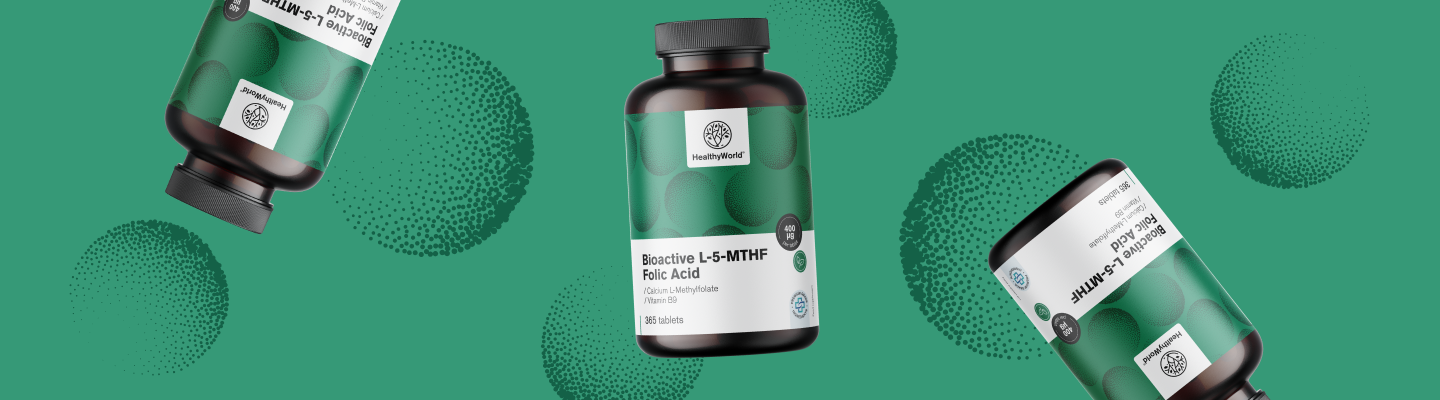 Biologisch aktive Form von Folsäure - Calcium-L-Methylfolat, das im Körper hervorragend verwertet wird.